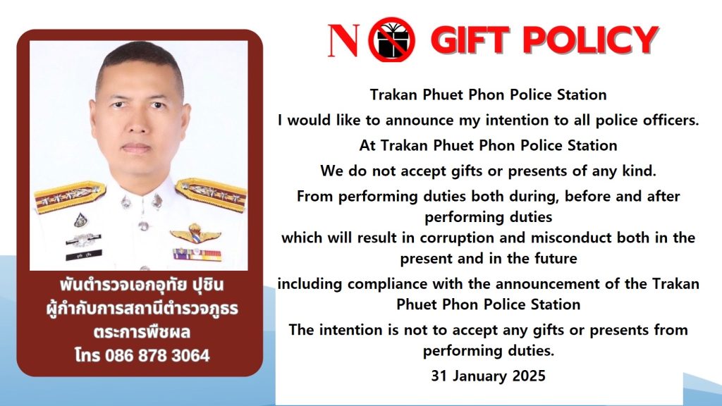 ชมกิจกรรมการมีส่วนร่วมของหัวหน้าสถานีตำรวจในการต่อต้านการทุจริต/การรับสินบน คลิ๊ก <<